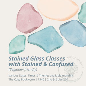Our second location, “The Cozy Bookwyrm,” is open in the South Front District! We have a curated array of pottery, books, clothes, goods & more. This is our home for Clay Dates, Private Classes, Craft Nights, Collaborations, Stained Glass Classes, & Pottery Painting.