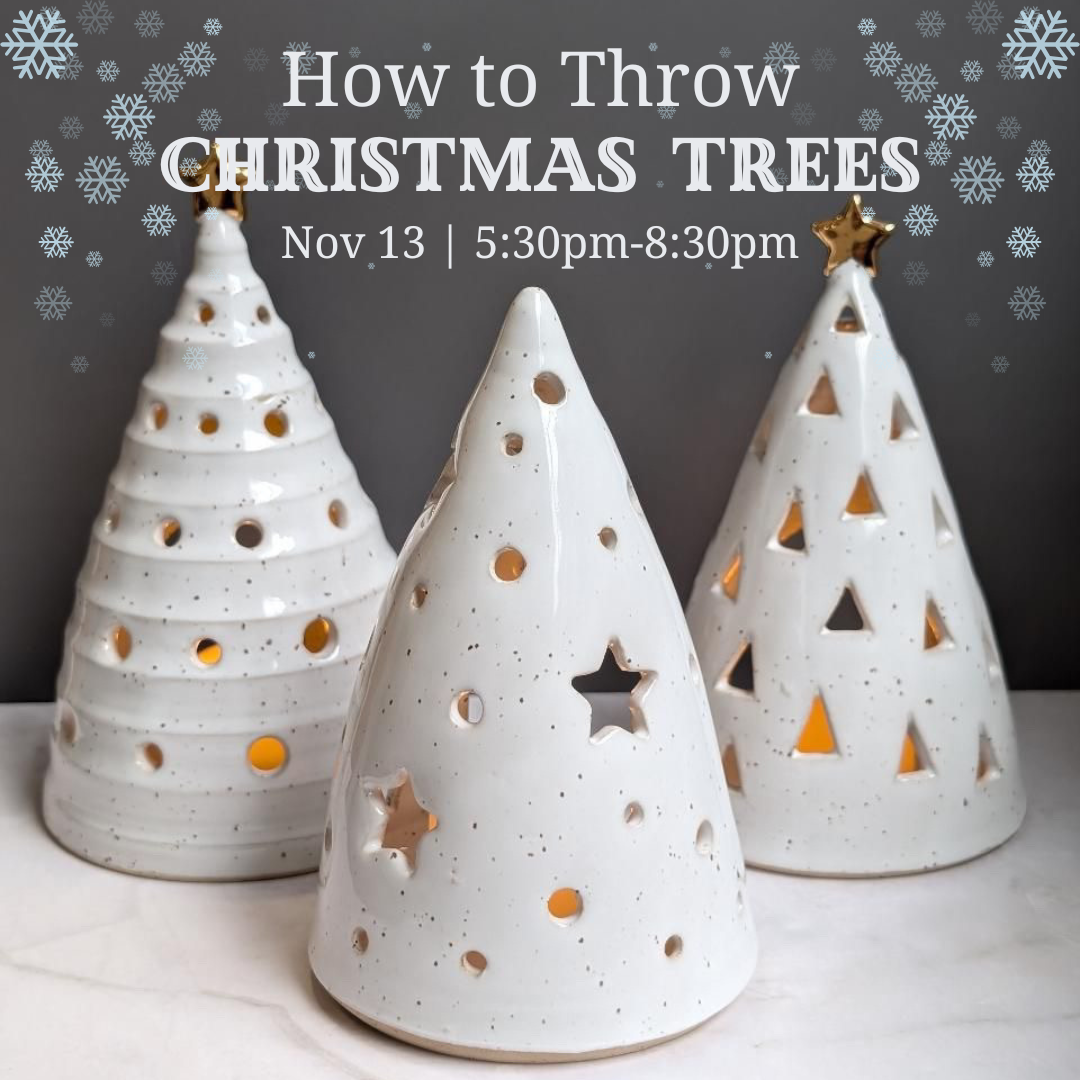 In this 3-hour workshop, you will learn to throw and trim closed-form trees on the wheel! Participants will spend time throwing the form and will also be provided a leather hard tree to trim and decorate. Participants should have some wheel experience, including basic proficiency in pulling walls and throwing cylinders.